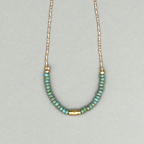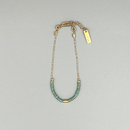 Les mailles et apprêts sont dorés à l’or fin. Perles de verre du Japon artisanales teintées dans la masse. Longueur : 14 cm Rallonge : 3 cm
